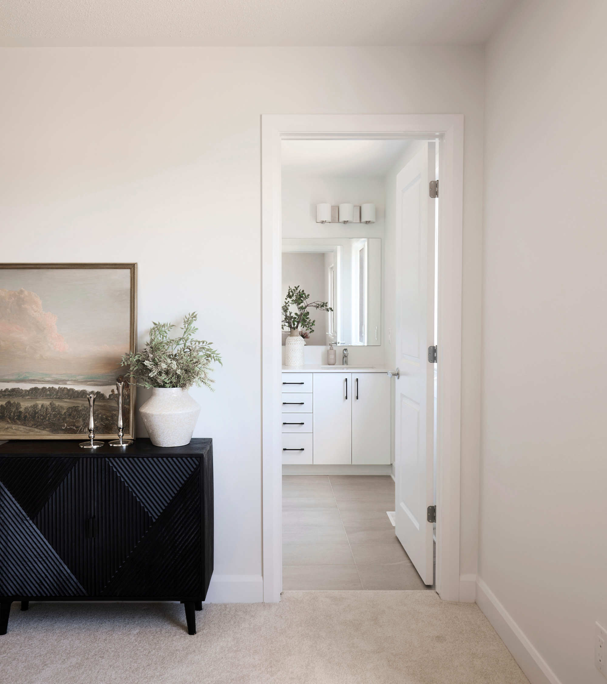 For this model home, we embraced a refined, minimalist approach while keeping the atmosphere warm and inviting. Clean lines and thoughtfully used decor allow the spaces to stand out, while leaning artwork and sculptural accents add an effortless collected feel.